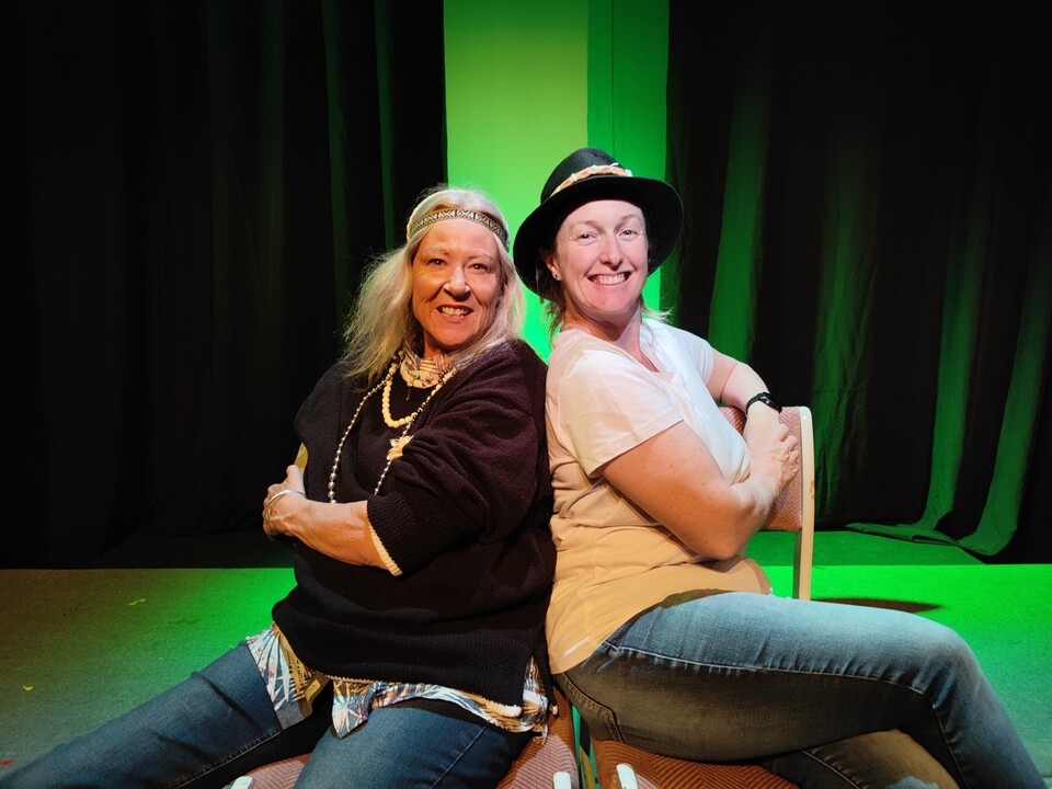 Fiordland Performing Arts recently performed 'Rail Friends' as part of their Upstage and Personal short play festival. Getting to know each other on the train and in rehearsal are Rachael (Kylie Cartwright) pouring a drink and Abby-Lee (Angela James). (Photos supplied and published with permission)