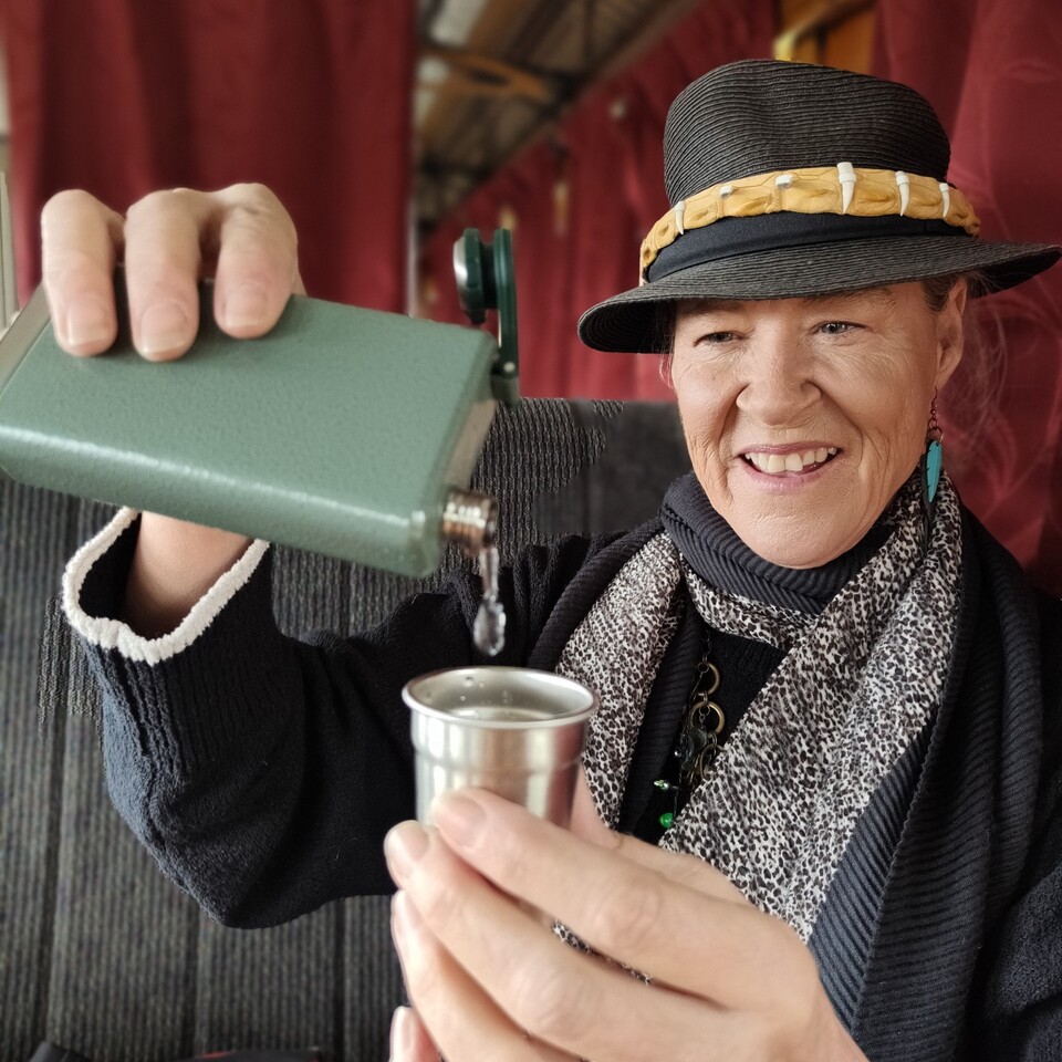 The play 'Rail Friends' was performed as part of the third-year theatre programme at Victoria University of Wellington. Travelling on board were Abby-Lee (Kas Homan, pink jumpsuit), Rachael Avis (Yasmin Clements-Levi, blue top), and Michael Robinson (Caleb O'Halloran, cap). Director was Bibi Grainer (black dress). (Photos and text supplied and published with permission)